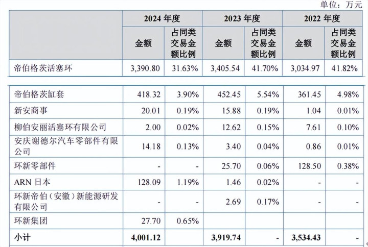 新富科技向帝伯冶金采购的内容主要为电力采购,主要系新富科技厂房与帝伯冶金厂房位置相近,供电公司在相关区域厂房建设初期仅设立一座变压器供位置相近公司共同使用。2022年-2024年,公司关联采购金额合计分别为1106.99万元、1288.28万元和3824.48万元。安庆市生态环境局2023年3季度“双随机”抽查结果中发现帝伯格茨活塞环存在环境违法行为。