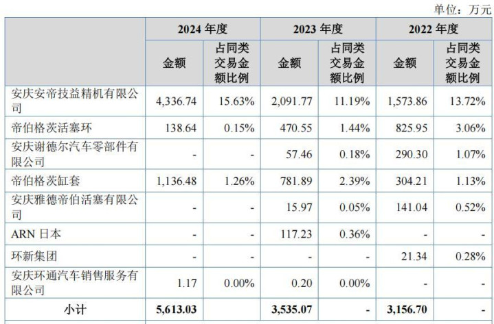 综上,公司存在向关联方安帝精机、环丰物流处采购其自产设备、运输服务的情况,采购价格低于外部比价。公司向帝伯格茨活塞环、帝伯格茨缸套、安庆谢德尔汽车零部件、安庆雅德帝伯活塞采购零部件,后转售予相关客户。公司存在向关联方帝伯格茨活塞环销售活塞环线材的情况,毛利率整体高于公司整体线材毛利率。