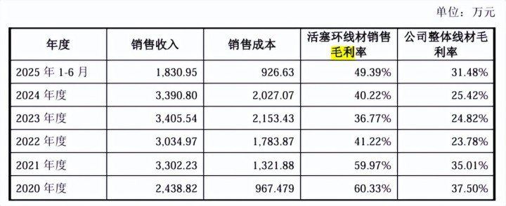 活塞环线材毛利率与公司整体线材毛利率的差异始终保持稳定,且由于2023年活塞环线材生产主体切换至环新新材料,存在产能切换、成本分摊等部分原因呈先下降后上升的趋势。
