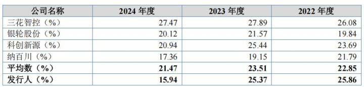 报告期内,公司综合毛利率分别为25.86%、25.37%、15.94%,2022年及2023年,公司综合毛利率略高于行业平均水平,差异较小。